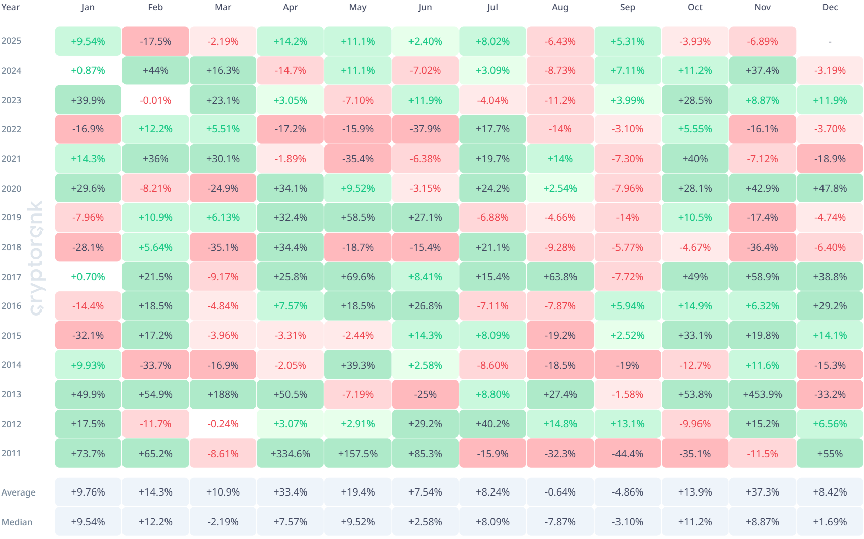 According to the data curated from Cryptorank ,the monthly return chart november as the month of most rebounds.