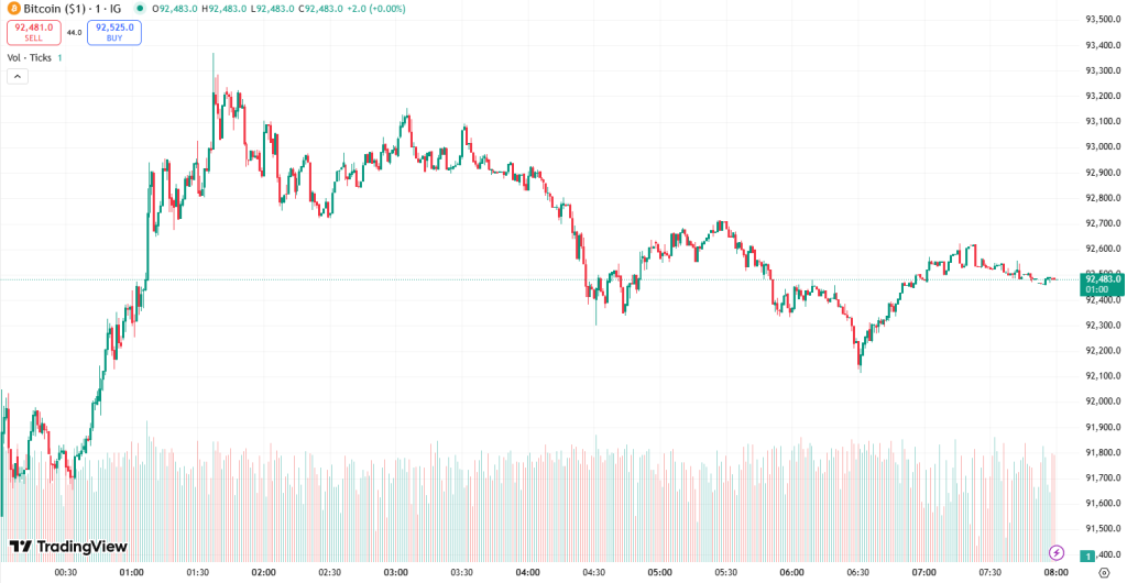 At the time of writing on Monday morning, BTC stood at $92,483. For the majority of the past 24 hours, the coin traded sideways at the $91,000 level. It then jumped from $91,138 to the intraday high of $93,169.